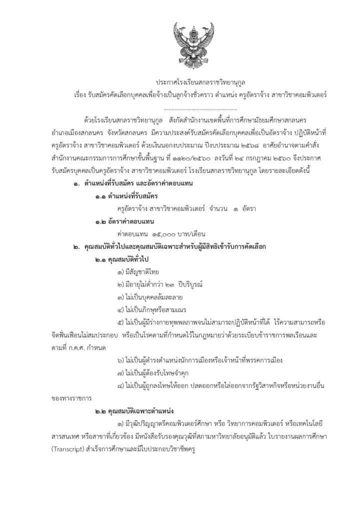 ประกาศรับสมัคร ครูอัตราจ้าง สาขา คอมพิวเตอร์