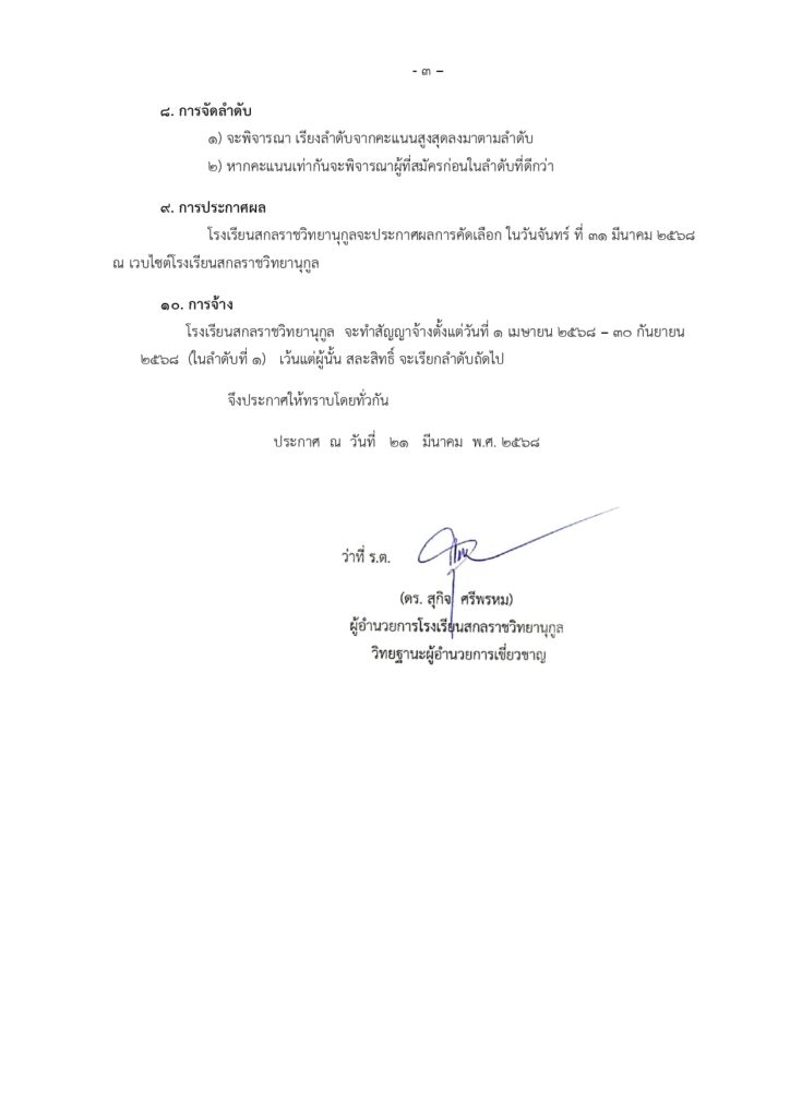 ประกาศรับสมัคร ครูอัตราจ้าง สาขา ภาษาจีน